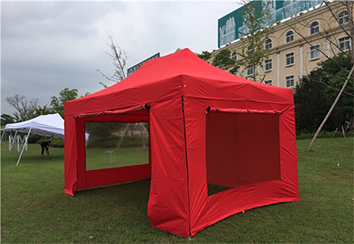 当使用折叠帐篷时,我们可以将帐篷单个撑开使用,也可以将多个帐篷连接到一起使用。